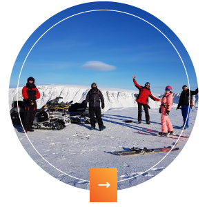 У вас есть возможность быстро добратся до дикого склона на снегоходе по горным путям это отличная возможность полюбоваться видами, прокатится на веревке за снегоходом, поднятся на вершину. Насладится спуском по целинным фрирайдным маршрутам или катанием вне трасс.